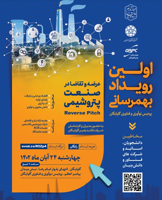 با حضور مدیران و کارشناسان شرکت تولیدات پتروشیمی قائد بصیر اولین رویداد بهمرسانی پردیس نوآوری و فناوری گلپایگان با موضوع عرضه و تقاضا در صنعت پتروشیمی برگزار گردید و محورهای